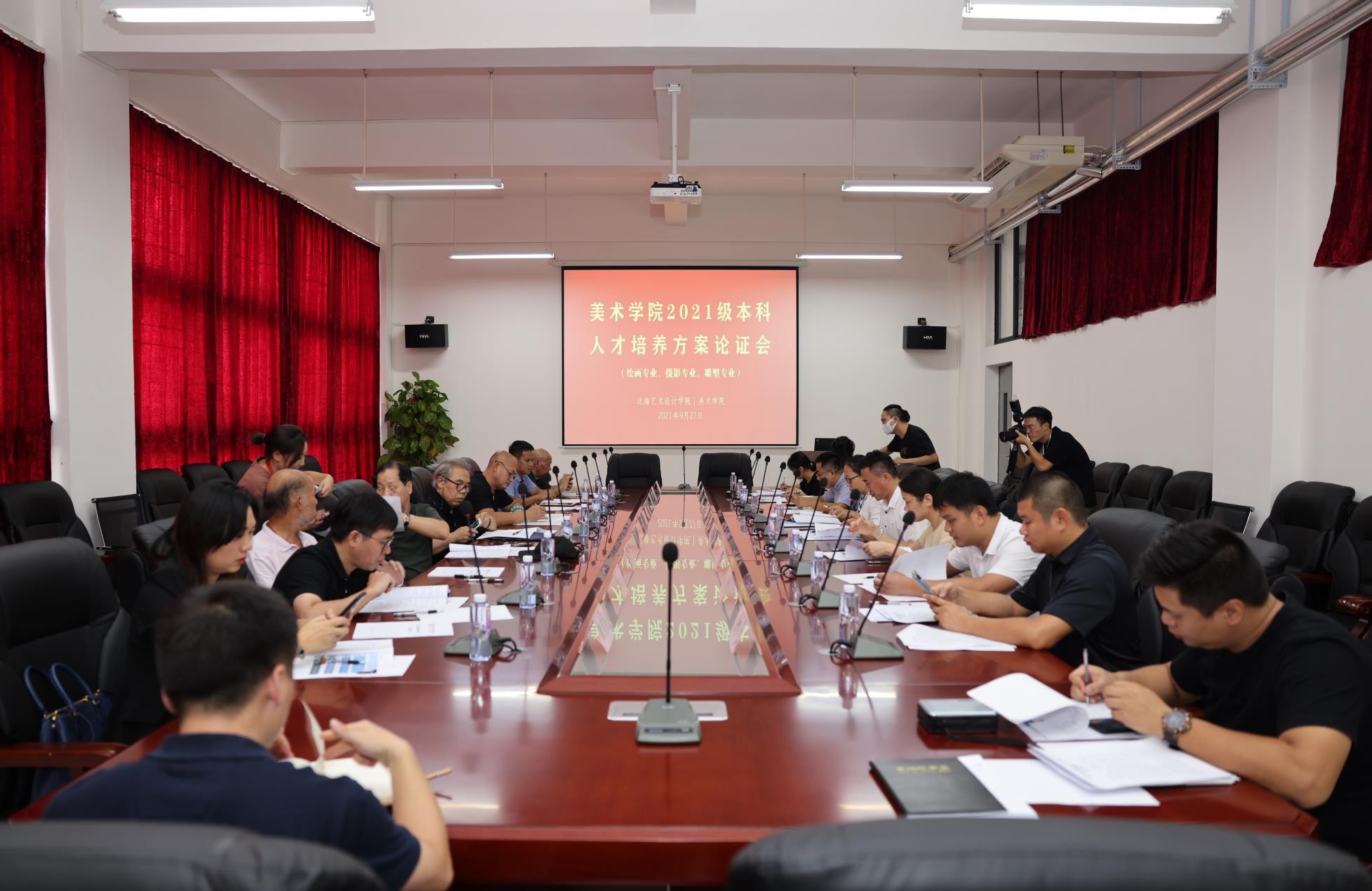 2021年9月27日,下午3点30分,美术学院于西校区图书馆会议室召开2021级本科人才培养方案专家论证会,论证专业包括绘画专业、摄影专业、雕塑专业。