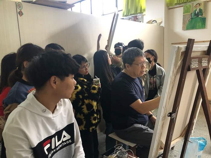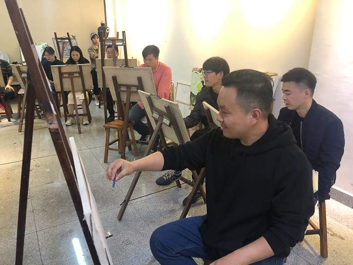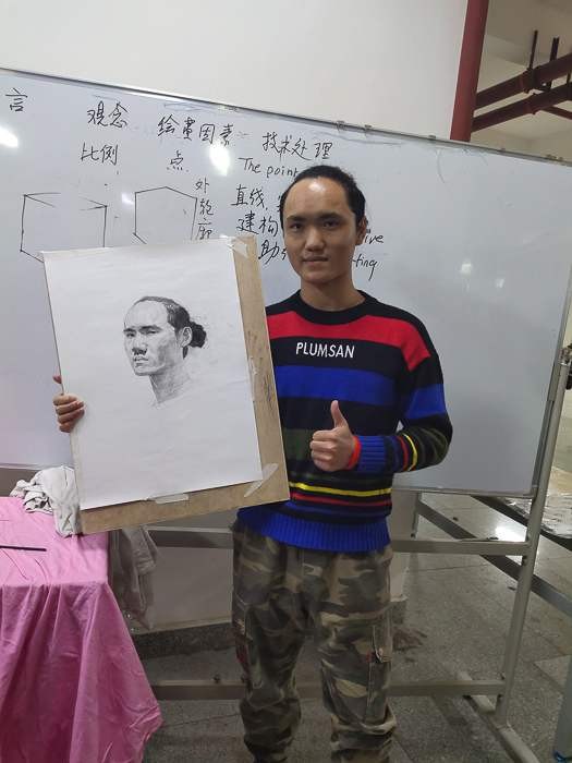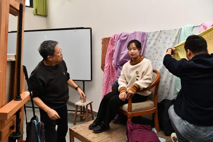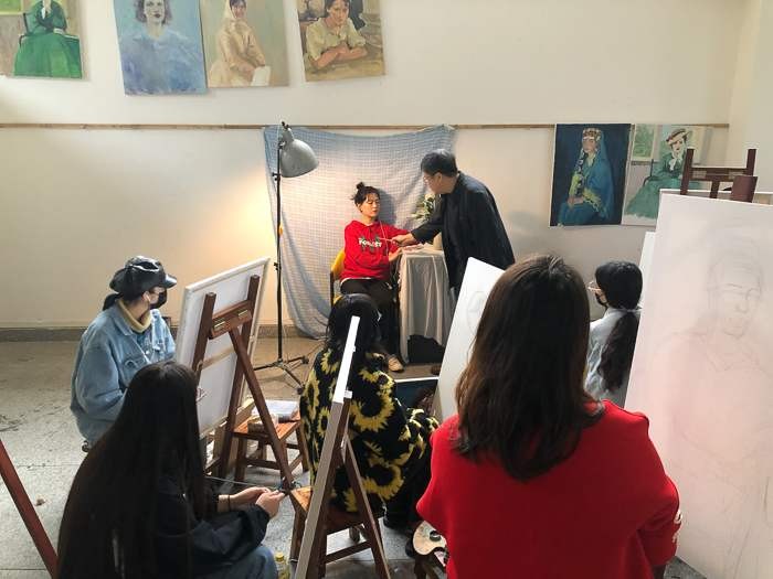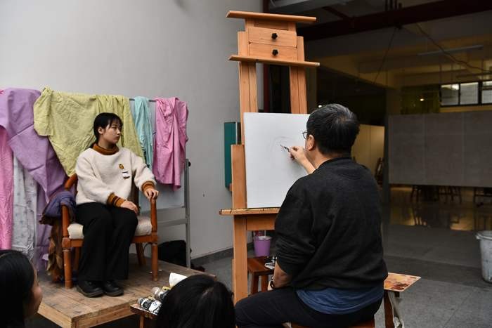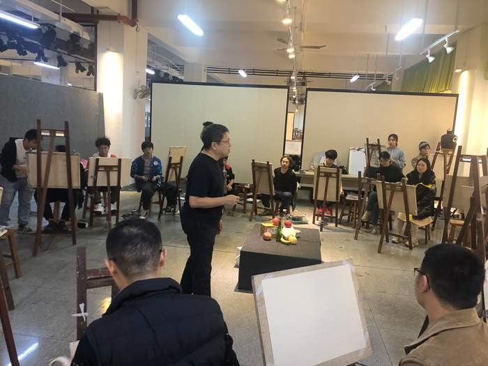 对美术学院的老师和学生代表进行了绘画基础培训,传授自己的教学方法。