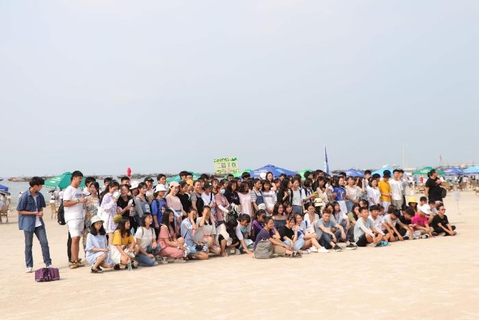 上午九点已是夏日炽阳,但每个同学们都是精神抖擞,充满期待。学校公交送达同学到达目的地银滩后,由学校记者团拍摄班级团体照,在拍摄的时候可以看出每个同学都笑容满面。拍完照片后,各班班主任细心认真地嘱托安全事项,后组织同学们自由活动。