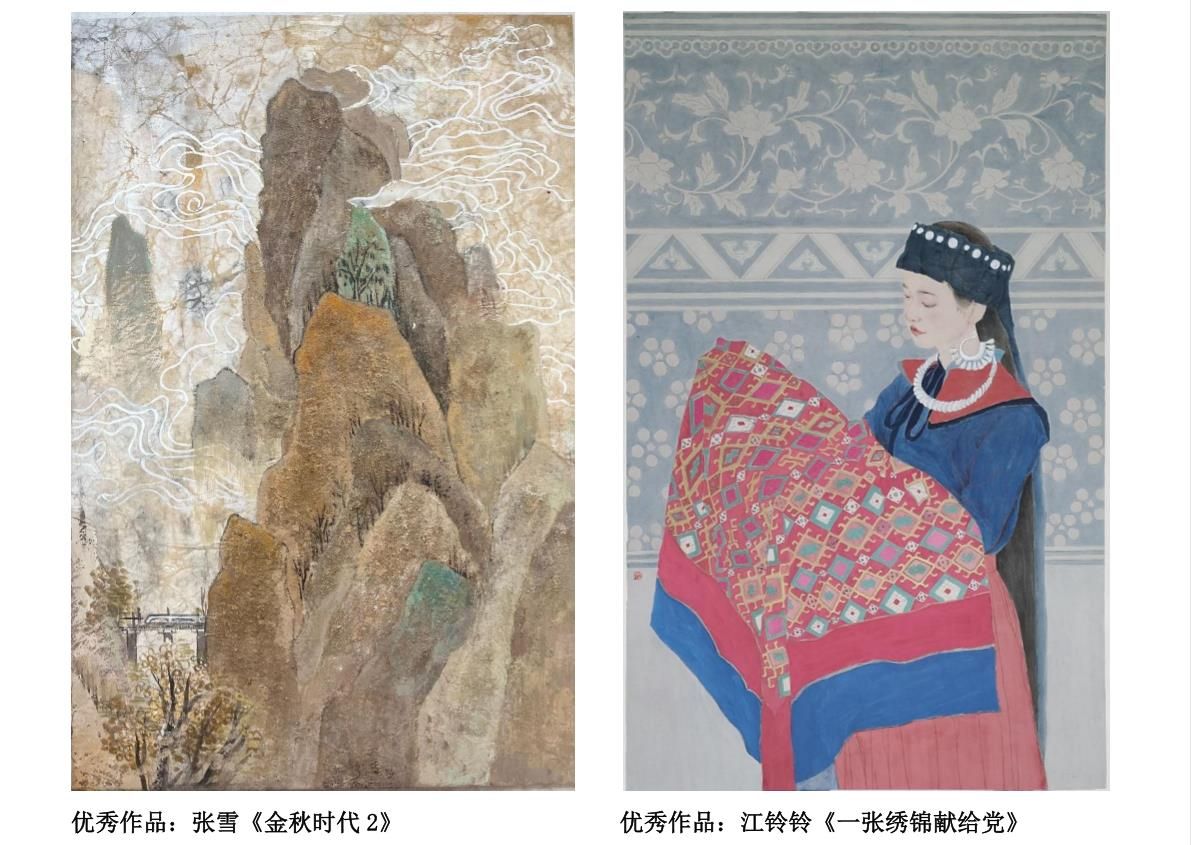 作品中,有的巧妙融合民族元素,将纹样和少数民族文化结合,把一张锦绣献给党;有的将国画人物与书法相结合,交织独具特色的中国画卷;还有同学将水墨技法发挥得淋漓尽致,将李大钊同志的人物形象刻画的栩栩如生。
