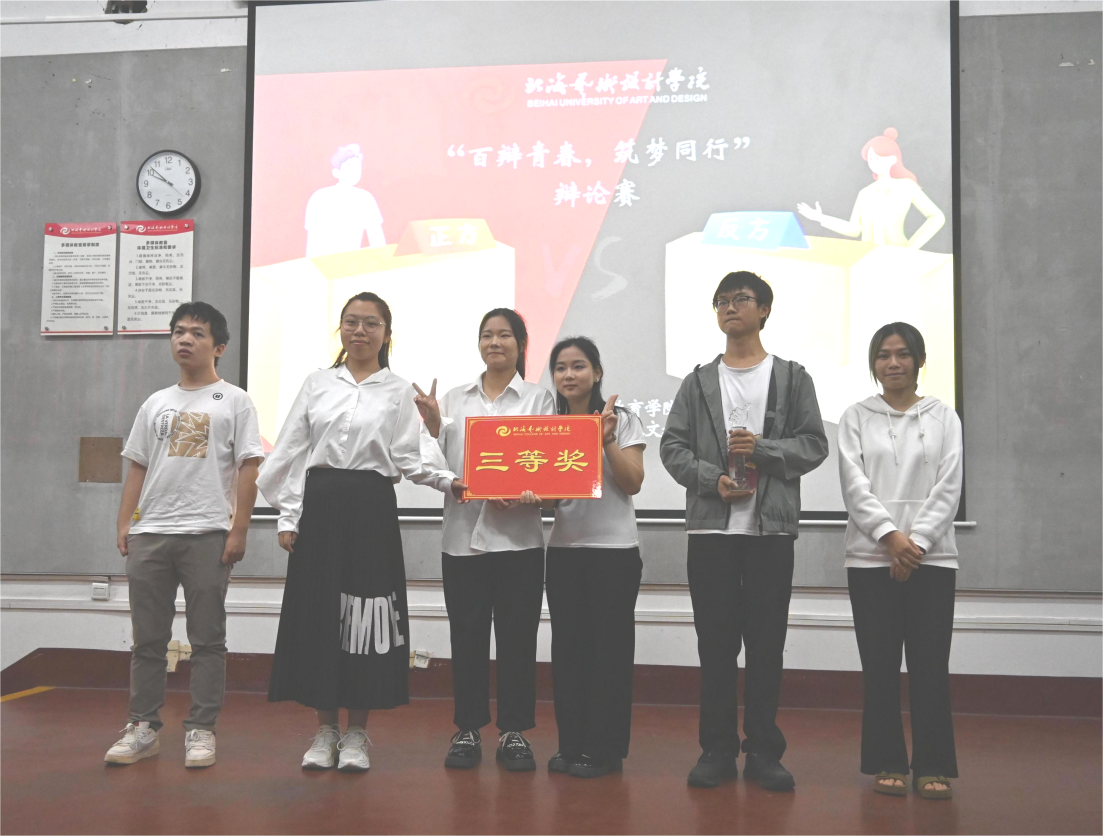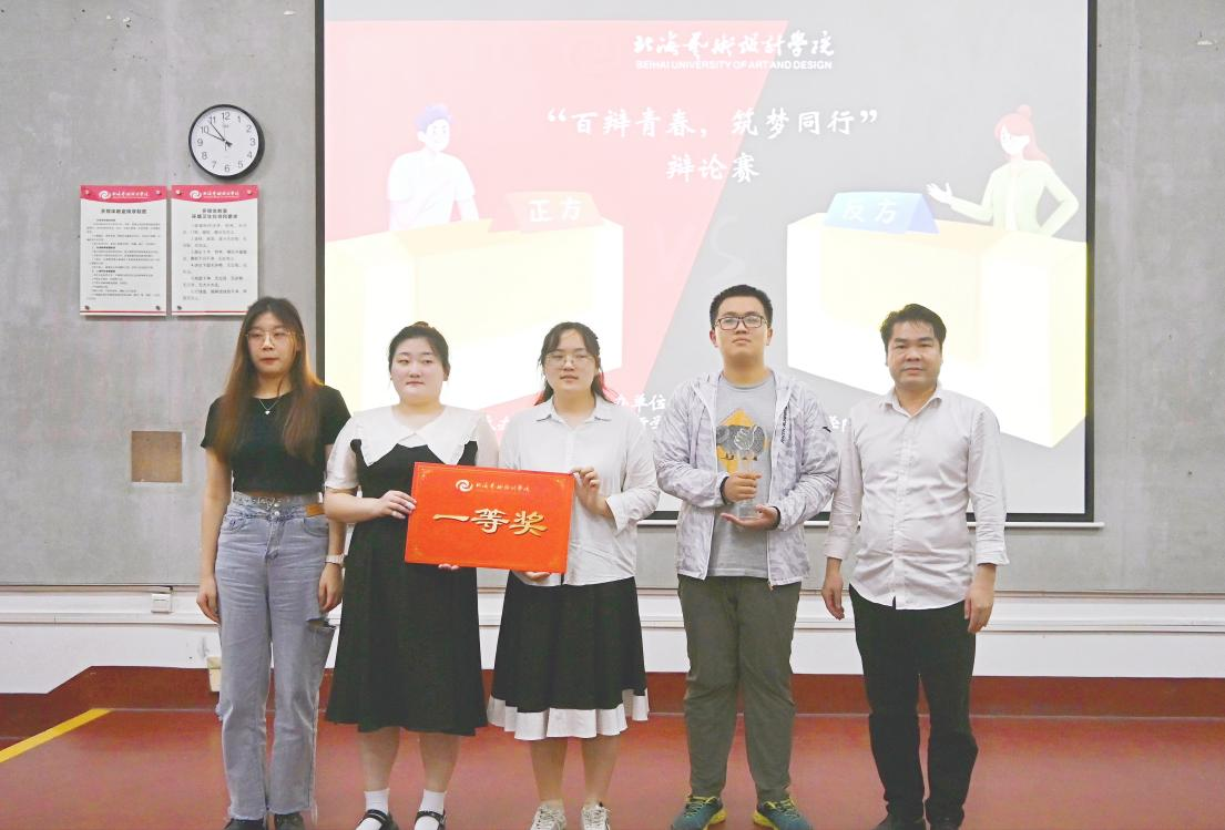 为进一步提升大学生的思辦能力、人文素养和综合素质,培养团队协作和创新精神,锻炼学生的应变、表达能力,展现当代大学生良好的精神风貌,北海艺术设计学院人文教育学院于4月14日晚在东校区觉悟楼104成功举办“百辨青春,筑梦同行”主题辨论赛决赛。学校党委委员刘承初、人文教育学院院长熊秀峰、副院长李水亮应邀出席活动。