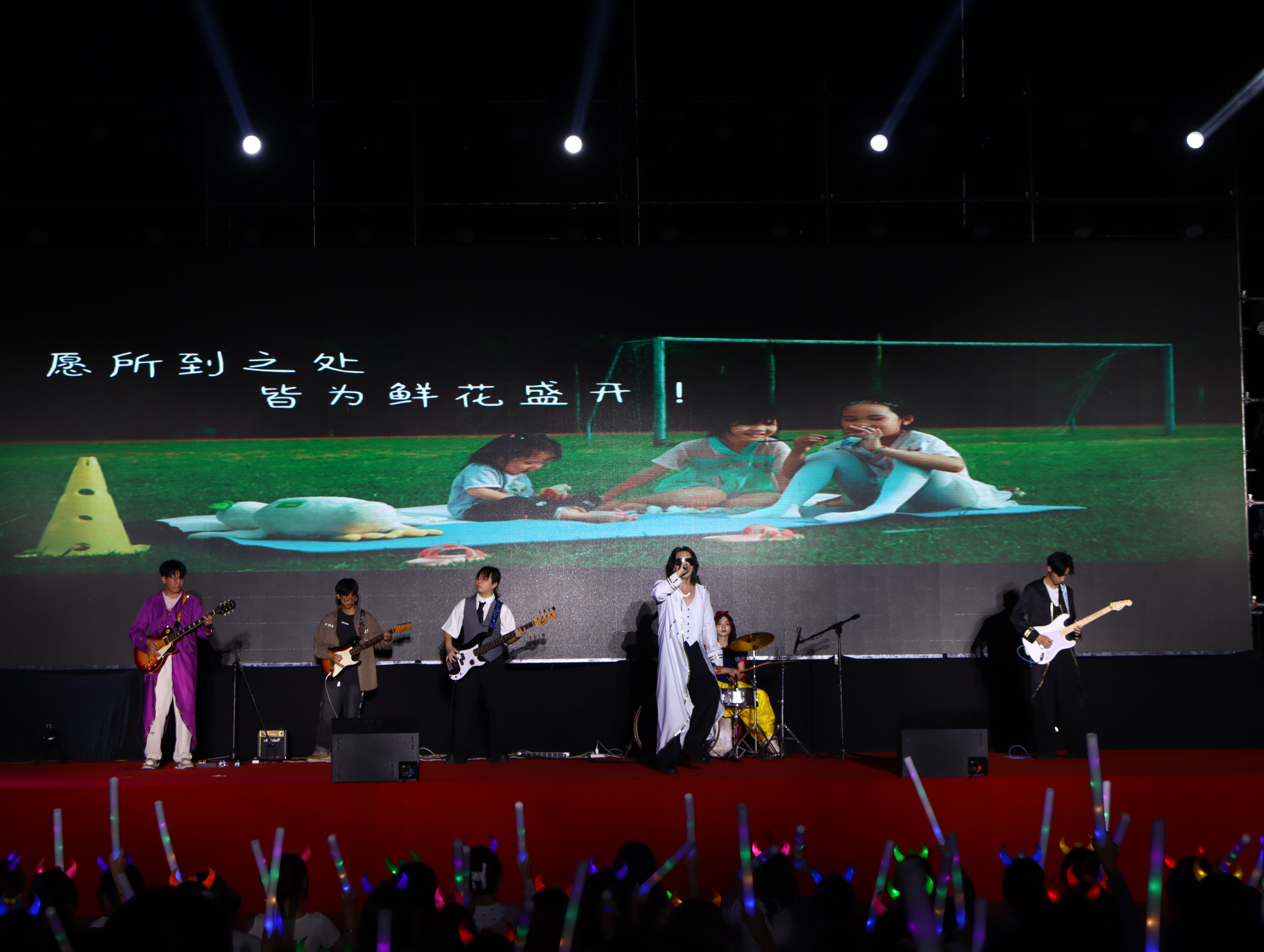 夜幕降临,晚会以民谣吉他基础弹唱班带来的《鲜花》作为开场。悠扬而深情的吉他旋律如同一股清风拂过,将所有人的目光聚焦在舞台上,让人不由自主沉浸在这份美好之中。《鲜花》不仅是一首开场曲,更是今晚美好时光的开端。
