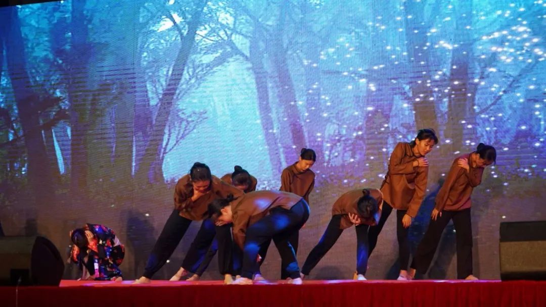 不忘初心、牢记使命是为中华人民谋幸福,为中华民族谋复兴。呼吁永远把人民对美好生活的向往作为奋斗目标,以永不懈怠的精神状态和一往无前的奋斗姿态,继续朝着实现中华民族伟大复兴的宏伟目标前进。由舞表1902班项铭会、蔡艺文等同学表演的《八女投江》,用柔美的舞姿展现了东北抗日联军8名女战士,在抗击日本侵略军的战斗中弹尽援绝,为国捐躯的英雄气概。