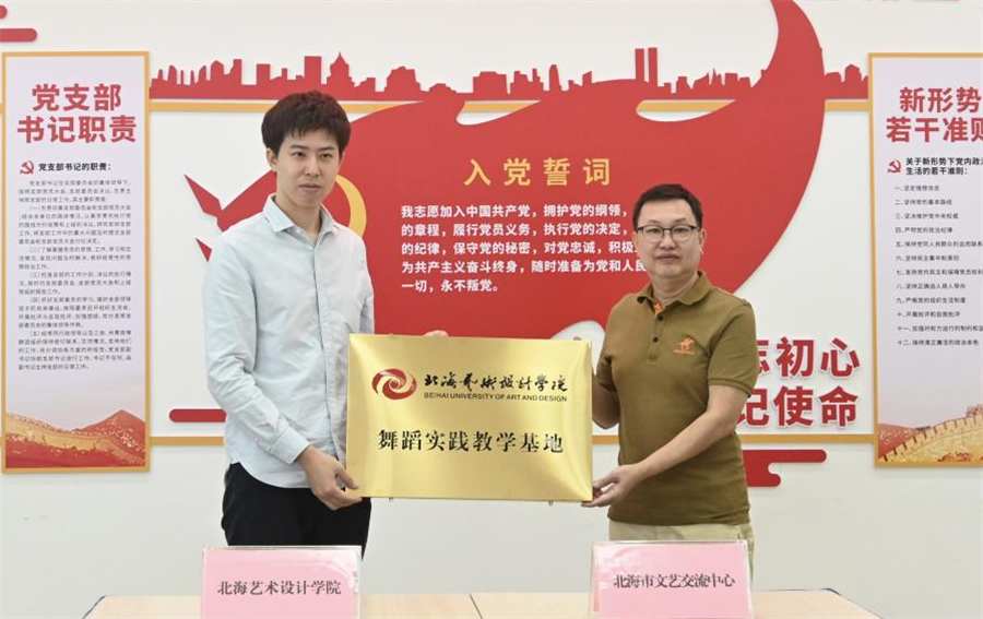 (学校与北海市文艺交流中心续约挂牌)