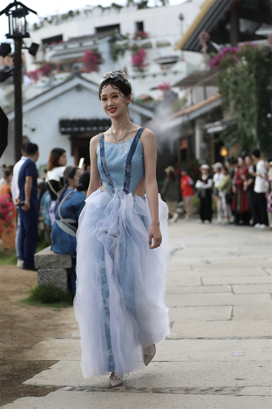 北艺学子在时装秀中快乐自在的状态,展现出了更加自信的美好品质,也展示了学生学习成果。同学们用纷呈各异的艺术设计表现手法,展示出对服装艺术的理解和追求,整个服装作品精彩的走秀展演伴着动听的音乐不断地给海丝首港景区游客带来惊喜和震撼,现场阵阵掌声为同学们的创意喝彩。
