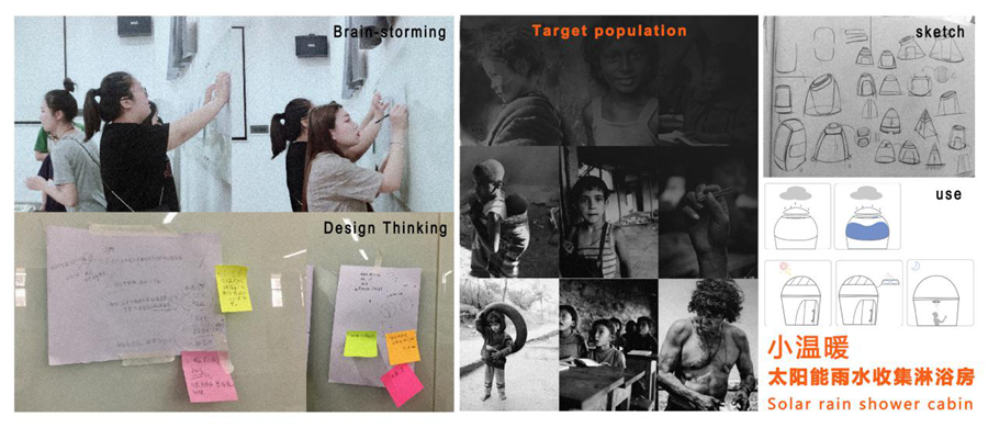 本设计以消除一切形式的贫困为主题,解决偏远山区的居民因地理环境导致没有完善的洗澡设备的问题,将太阳能、淋浴房与雨水收集,三者结合解决水源加热问题,同时增加了收集雨水与过滤功能,更好的收集水源、通过太阳能加热水源,让偏远地区的人们洗浴更方便。