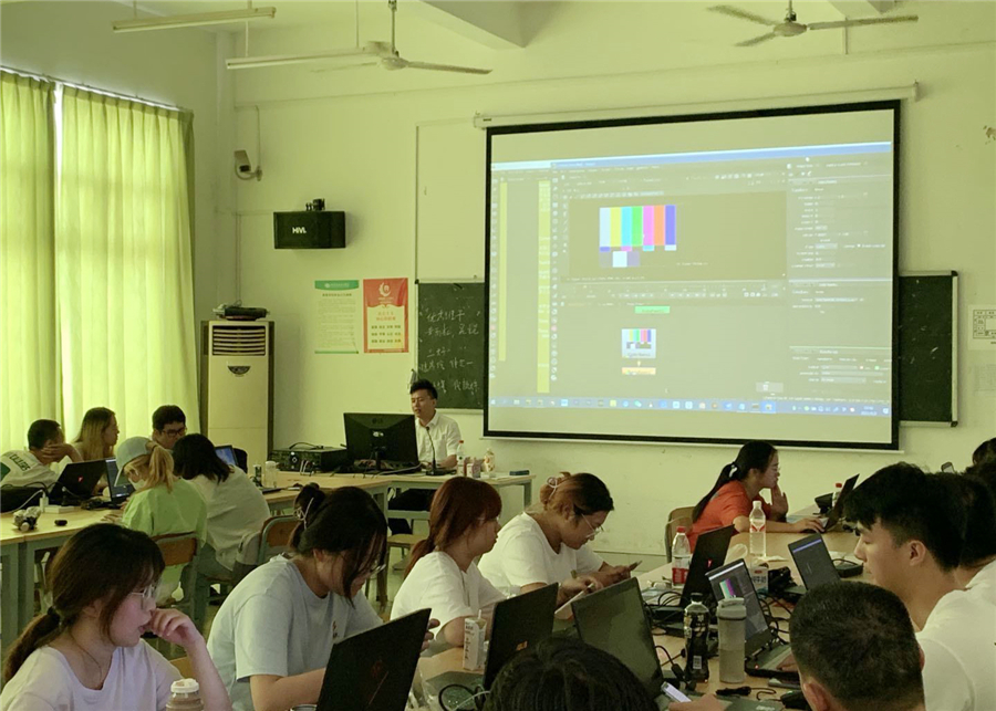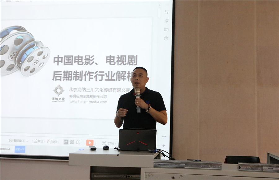 交流期间,海纳三川文化传媒有限公司教育总监郭浩老师还为数媒班同学,就影视后期特效展开为期三天的授课,讲述影视后期特效与影视作品融合技法和软件实际操作方法。