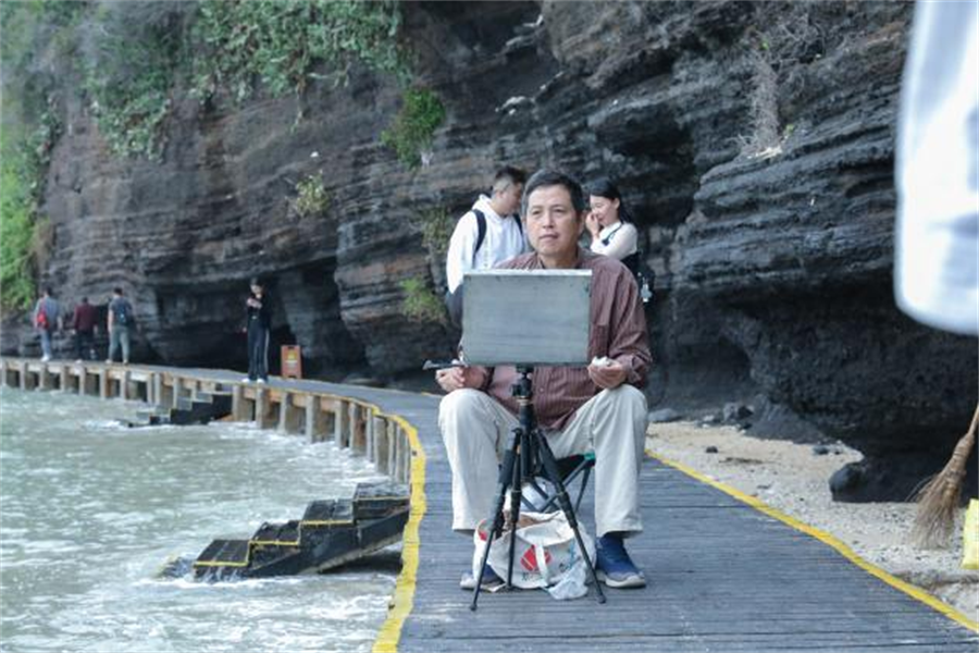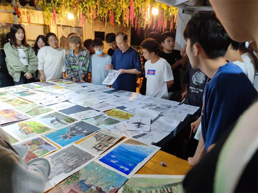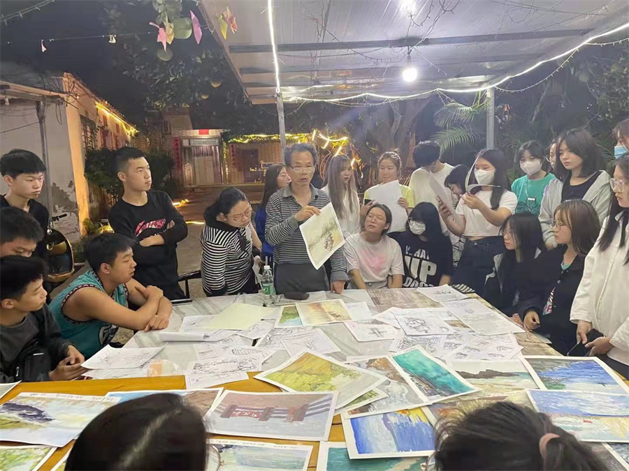 同学在绘画写中,一起去描绘涠洲岛的美景、美事。早晨,大家拿起手中的画笔刻画着眼前美好的风景;黄昏,师生一起交流学习,点评当天的绘画作品,探讨绘画的乐趣。这不仅提高了同学们的学习热情,也促进了同学之间的沟通,更增进了师生之间的感情。