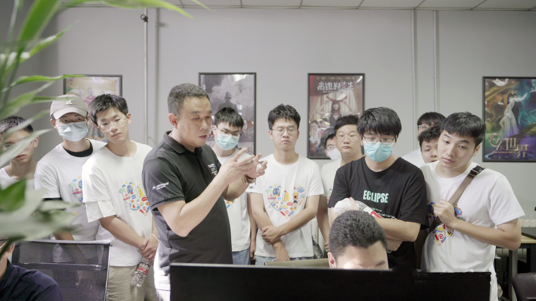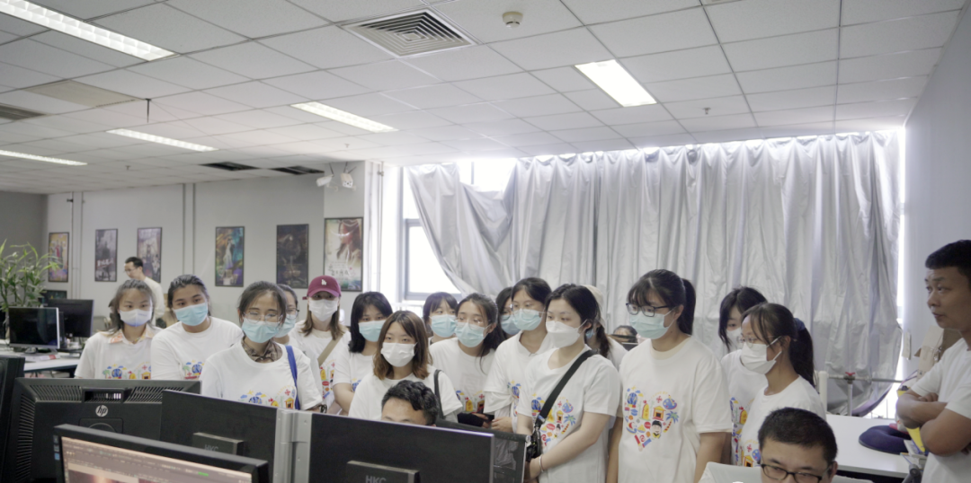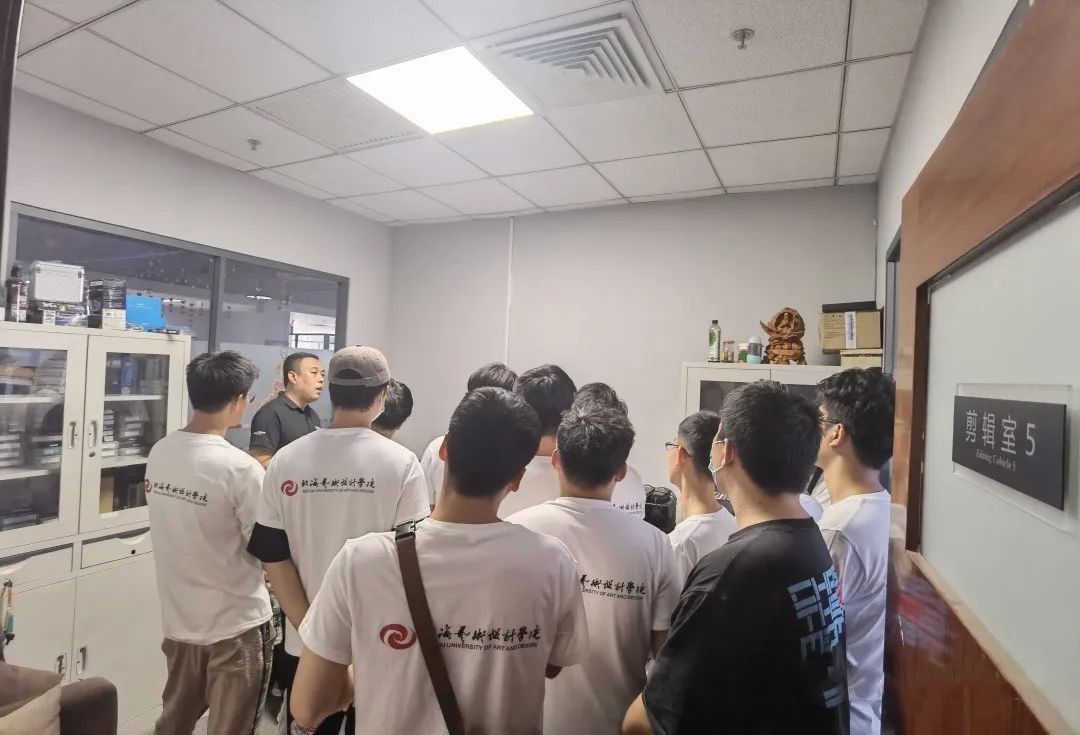 考察团一行先后对海纳文化的公司环境、人员架构、员工工作状态等进行实地考察,重点调研了公司发展现状、业务板块及人才需求等情况。在海纳三川文化传媒有限公司副总裁邢江峰的带领下,学生近距离观摩了影视项目后期制作流程,对各部门的工作运转模式有了更直观的理解和认识。